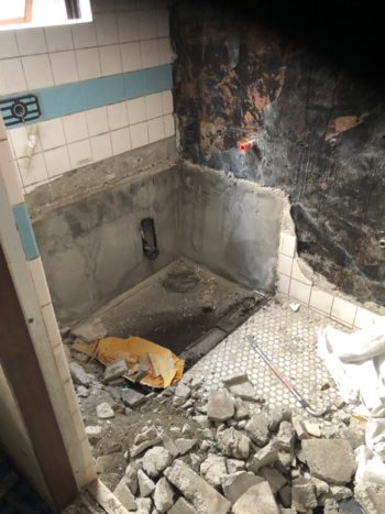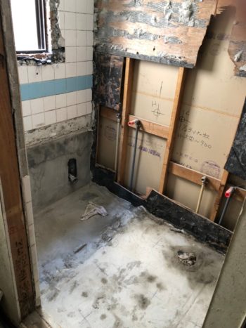 まずはタイルを割剥がし、解体。